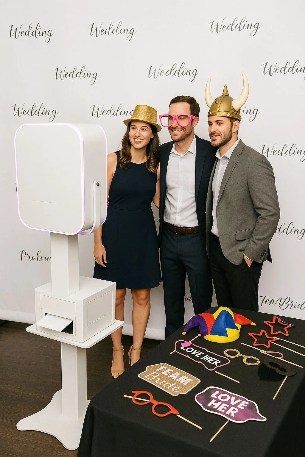 Our Modern PhotoBooth offers a fun and interactive way for you and your guests to capture unforgettable memories. It delivers high-quality, instant prints at your special event. The booth includes premium props and a stylish backdrop. While the booth is user-friendly, a professional attendant will be on-site to ensure everything runs smoothly and assist your guests throughout the experience.